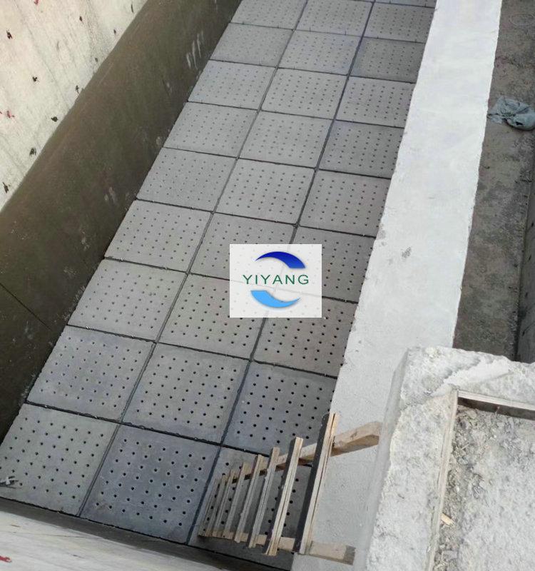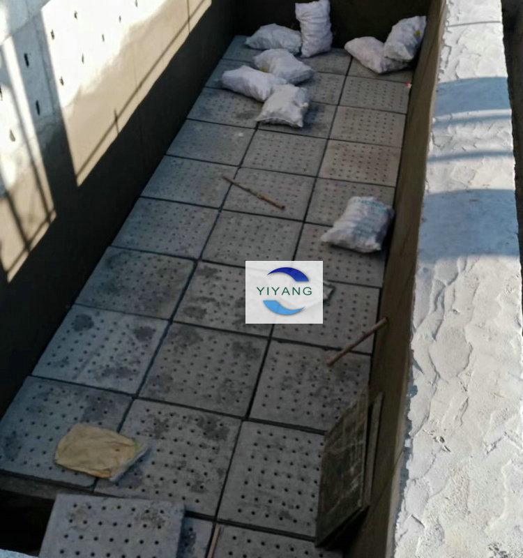 自來水廠過濾池中選擇使用水泥濾板時,需要配套安裝蘑菇型長柄濾頭,水泥濾板在預(yù)制加工的時候長柄濾頭的預(yù)埋件是已經(jīng)澆筑在水泥濾板中的,制成成品后,在濾池底部槽梁建好后,拼接安裝水泥濾板,安裝完畢后要對水泥濾板縫隙進(jìn)行粘接密封,完工后開始安裝長柄濾頭、濾水帽。詳情如下圖所示: